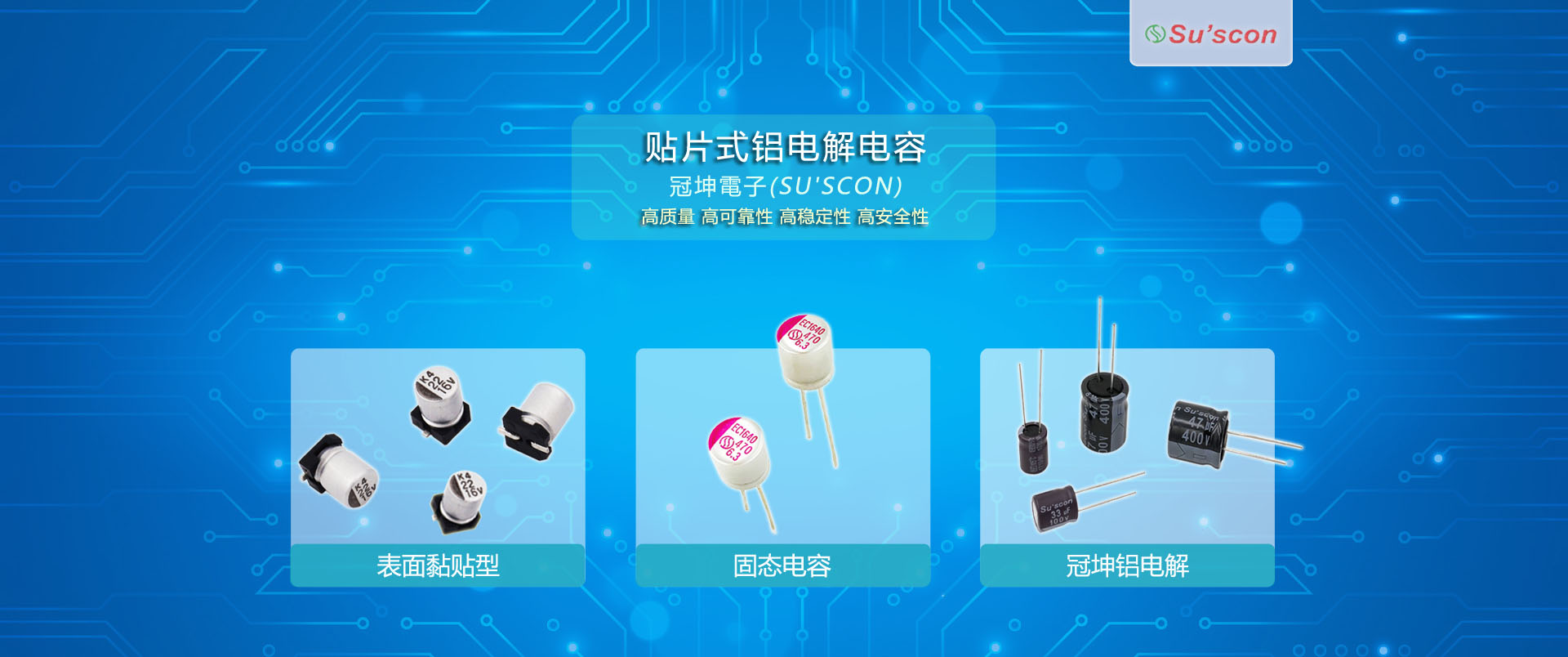 深圳市立遠高科電子有限公司(簡稱“立遠高科”)主營鋁電解電容。代理臺灣冠坤電子全系列產品,包括:螺絲型、基板組立型、表面粘貼型、導針引線型、固態電容、半固態電容等;同時代理立隆鋁電解、薄膜電容以及德國霍夫曼工具、國巨、風華、TDK等品牌。立遠高科秉承“顧客至上、銳意進取”的經營理念,堅持“客戶至上”的原則為廣大客戶提供優質的服務,歡迎惠顧! 冠坤電子企業股份有限公司由總經理蘇輝雄先生所創立,始自1978年,致力成為電解電容器的專業制造商。旗下的Su'scon品牌為蘇總經理所發想,融合了蘇總經理的姓氏與30余年來專業制造的電容器(condenser)之字首而成。 Su'scon代表著"總是走在競爭者前面" ,本著這份競爭精神,也讓Su'scon不論是面對日本或世界其他國家的競爭對手,皆已在電解電容產業占有一席之地。 其中對品質與研發的承諾,更是如今Su'scon得以獲得“全球性商譽的基石”......【查看更多】